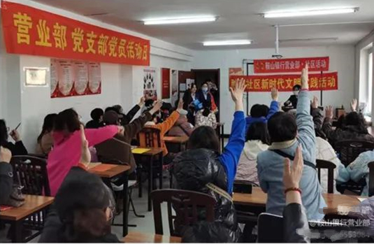 营业部联合社区开展“花香满堂·金融知识讲堂”庆祝女神节活动,来自社区的60多名女性代表热情参与。通过活动向她们宣传惠民存款政策,获得社区委员会和百姓对我行高度认可。